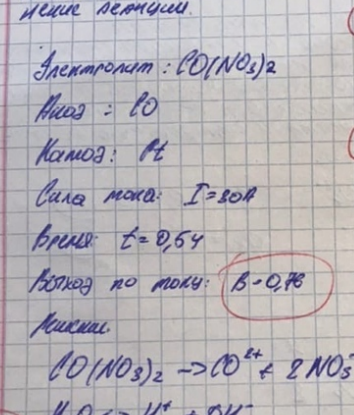 В задачах 1080 – 1092 определите изменение массы растворимого анода при пропускании тока через электролит. Напишите уравнения процессов, протекающих на электродах, и суммарное уравнение реакции.1091 | Co(NO3)2 | Co | Pt | 30,0 | 0,5 | 0,76 |