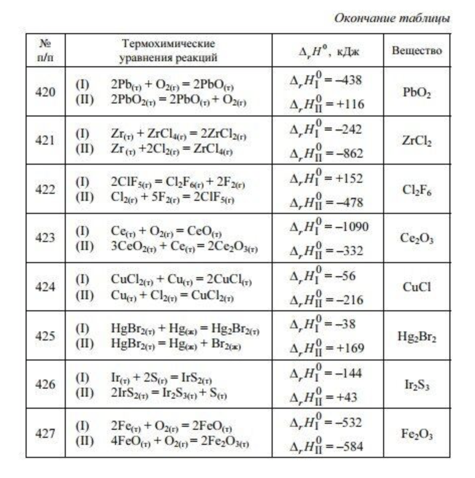 Задача 420: В задачах 415 – 427 по заданным термохимическим уравнениям рассчитайте стандартную энтальпию образования указанного вещества.