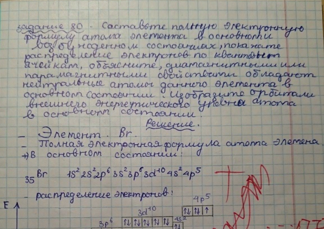 Задача 80 - составьте полную электронную формулу атома элемента в основном и возбужденном состояниях, покажите распределение электронов по квантовым ячейкам, объясните, диамагнитными или парамагнитными свойствами обладают нейтральные атомы данного эл