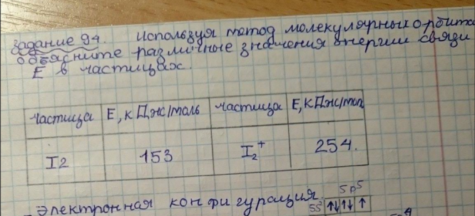 Задача 94: Задача 94 - используя метод молекулярных орбиталей, объясните различные значения энергии связи E в частицах.