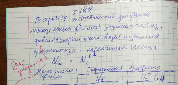 Постройте энергетические диаграммы молекулярных орбиталей заданных частиц, сравните энергии химмических связей и укажите диомагнитную и парамагнитную частицы n2 N2-