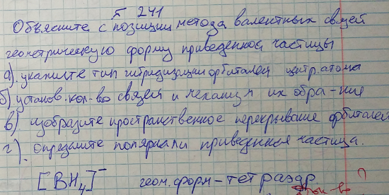 Объясните с позиции метода валентных связей геометрическую формулу приведенной частицы: а) укажите тип гибридизациорбиталей центрального атома б) установите количествуо связей и механизм их образования в) изобразите пространственное перекрывание орбиталей г) определите полярна ли приведенная частица BH4-.