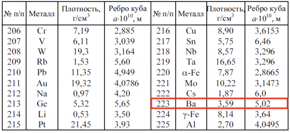 Супер подробное решение задачи 223: В задачах (206-225) определите, используя приведенные ниже экспериментальные данные, структурный тип кристаллической решетки, в которой кристаллизуется данный металл (гранецентрированная кубическая, объемноцентрированная кубическая или типа алмаза), рассчитайте эффективный радиус атома металла, изобразите элементарную ячейку, укажите координационное число.