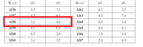 Задачи 1256–1267 (табл. 3.19). Рассчитайте ЭДС гальванического элемента, составленного из двух нестандартных водородных электродов с разными значениями рН раствора. Составьте условную схему гальванического элемента, напишите уравнения анодного и катодного процессов.