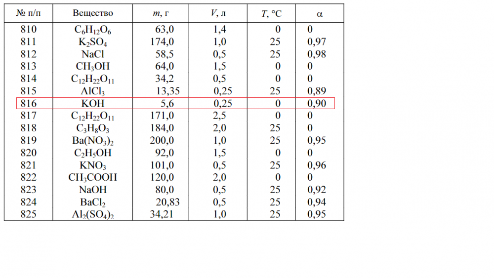 Задача 816. Вычислите осмотическое давление водного раствора электролита (m — масса растворенного вещества; V — объем раствора; Т — температура; α — степень диссоциации)