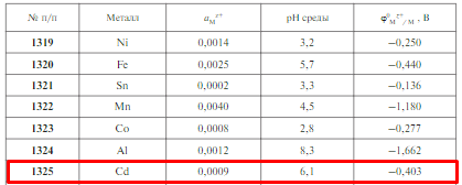 Задачи 1319–1330 (табл. 3.24). Расчетом ЭДС коррозионного элемента Е и энергии Гиббса ΔrG коррозионного процесса определите возможность коррозии металла во влажной деаэрированной среде при данных значениях водородного показателя рН и относительной активности ионов металла аМz +. Приведите уравнения анодного и катодного процессов.