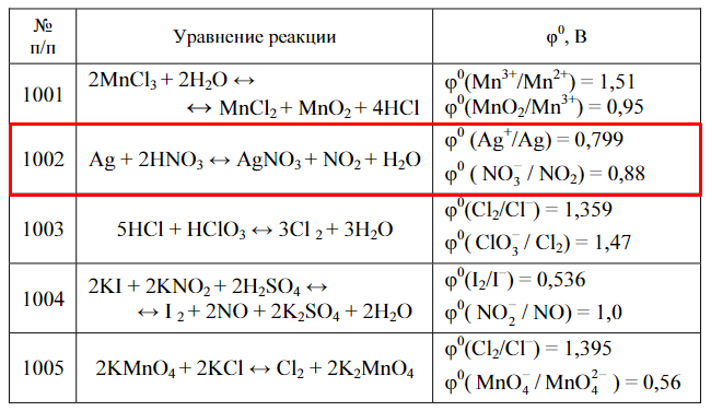 Главная » Учебные материалы » Химия » Решения задач » Несколько классов/семестров » Номер 1002 » Определите направление, в котором реакция может протекать самопроизвольно, используя окислительно-восстановительные потенциалы отдельных полуреакций, вычислите стандартную энергию Гиббса и константу равновесия реакции.