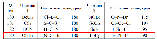 В задачах 180–205 приведены частицы, состоящие из одного и того же количества атомов. Используя метод валентных связей, укажите тип гибридизации орбиталей центрального атома, изобразите геометрическое строение указанных частиц (см. примечание к задачам 110−161).