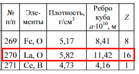 Главная » Учебные материалы » Химия » Решения задач » Несколько классов/семестров » Номер 270 » Определите формулу соединения, состоящего из указанных элементов, кристаллизующегося в кубической сингонии с известным числом формульных единиц Z в элементарной ячейке.