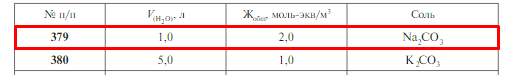 Задачи 379–388. Рассчитайте массу m соли, которую необходимо добавить к объему воды V для устранения общей жесткости Жобщ.