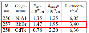Определите структурный тип соединения (СsС1, NaCl или ZnS) по приведенным ниже экспериментальным данным, изобразите элементарную ячейку, укажите координационные числа для катиона и аниона.
