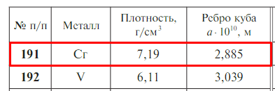 Задачи 191–210. Определите, используя приведенные ниже экспериментальные данные: а) структурный тип кристаллической решетки, в которой кристаллизуется данный металл (гранецентрированная кубическая, объемно центрированная кубическая или типа алмаза); б) рассчитайте эффективный радиус атома металла; в) изобразите элементарную ячейку, укажите координационное число; г) напишите электронную формулу атома и укажите, обладают ли атомы парамагнитными свойствами.