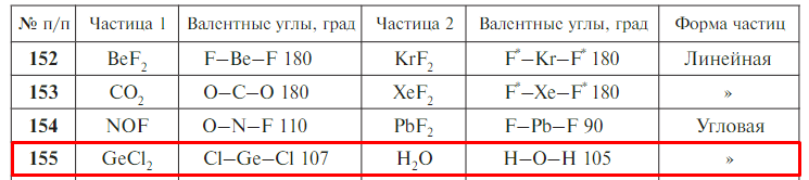 Задачи 152–166. Приведены частицы, имеющие одинаковую геометрическую форму. Используя метод валентных связей, объясните, одинаковый ли тип гибридизации орбиталей имеют центральные атомы частиц, имеются ли неподеленные электронные пары, оказывающие влияние на форму частицы. Приведите схему перекрывания атомных орбиталей.