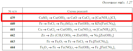 Задачи 434–444 (табл. 1.27). Составьте уравнения реакций, протекающих по приведенным схемам, укажите условия их протекания. Приведите название комплексного соединения или иона; укажите, в каком качестве выступает в них d-металл