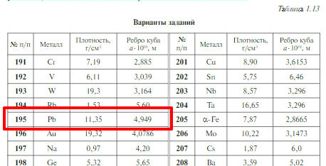 Главная » Учебные материалы » Химия » Решения задач » Несколько классов/семестров » Номер 195 » Определите структурный тип кристаллической решетки, рассчитайте эффективный радиус атома металла, изобразите элементарную ячейку и напишите электронную формулу атома
