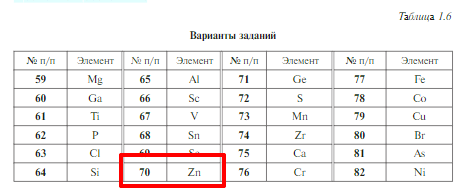 Задачи 59–82 (табл. 1.6). Составьте полную электронную формулу атома элемента в основном и возбужденном состояниях, покажите распределение электронов по квантовым ячейкам, объясните, диамагнитными или парамагнитными свойствами обладают атомы данного элемента в основном состоянии. Изобразите форму орбиталей внешнего энергетического уровня атома в основном состоянии.