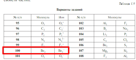 Задачи 95–108 (табл. 1.9). Используя метод молекулярных орбиталей, изобразите энергетические диаграммы молекул и молекулярных ионов, опре-делите порядок связи, сравните прочность связи, укажите характер магнитных свойств частиц.