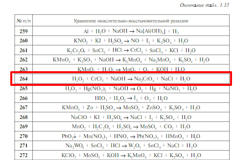 Задачи 249–289 (табл. 1.15). Подберите коэффициенты к уравнениям окислительно-восстановительных реакций, используя метод полуреакций; укажите тип ОВР и сопряженные окислительно-восстановительные пары