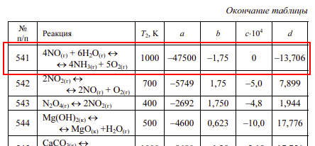 В задачах 537 – 556, используя уравнение температурной зависимости константы равновесия рассчитайте константу равновесия Kр при температуре Т1 = 298 K и при заданной температуре Т2. Укажите, в каком направлении смещается равновесие реакции при повышении температуры. Рассчитайте константу равновесия KС при стандартной температуре.