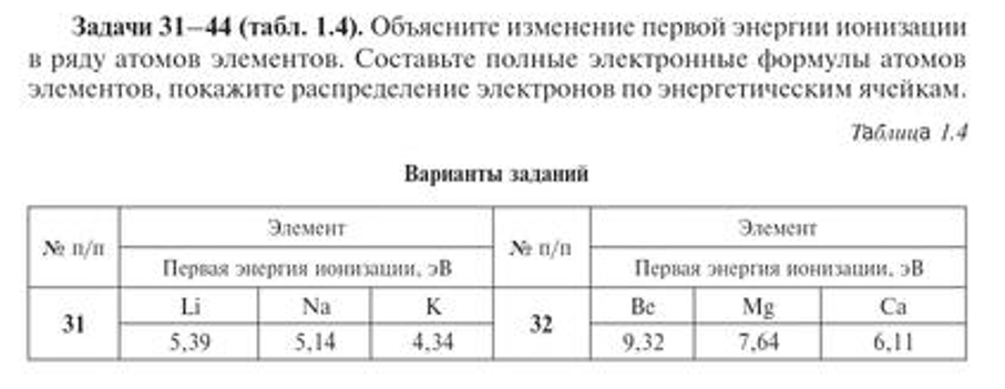 Задачи 31–44 (табл. 1.4). Объясните изменение первой энергии ионизации