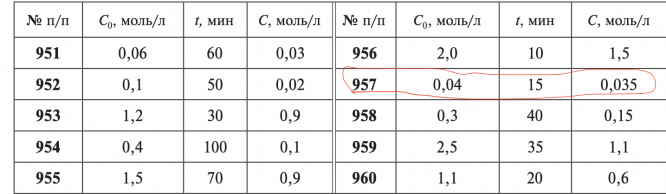 Задача 957: Рассчитайте для элементарной реакции второго порядка константу скорости реакции и время полупревращения