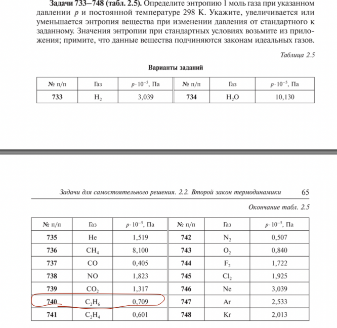 Главная » Учебные материалы » Химия » Решения задач » Несколько классов/семестров » Номер 740 » Определите энтропию 1 моль газа при указанном давлении p и постоянной температуре 298 K.