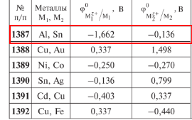 Задача 1387: Определите, какой из металлов является протектором для стального изделия (ϕ0Fe2+/Fe=−0,440 B).