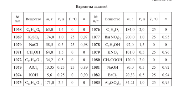 Главная » Учебные материалы » Химия » Решения задач » Несколько классов/семестров » Номер 1068 » Вычислите осмотическое давление водного раствора электролита (m — масса растворенного вещества; V — объем раствора; Т —температура; α — степень диссоциации).