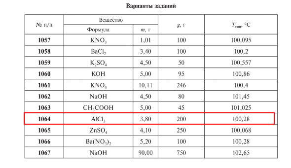 Для студентов по предмету ХимияОпределите степень диссоциации электролита в водном растворе (m — масса растворенного вещества; g — масса растворителя; Ткип — температура кипения расОпределите степень диссоциации электролита в водном растворе (m — масса растворенного вещества; g — масса растворителя; Ткип — температура кипения рас
