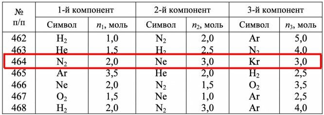 В задачах 462–480 рассчитайте энтропию каждого компонента в газовой смеси, подчиняющейся законам идеальных газов, и энтропию смеси.
