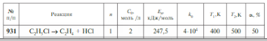 Задачи 931-950 (табл. 2.16). По известным экспериментальным данным (n — порядок реакции; Ea – энергия активации; k0 – предэкспоненциальный множитель в уравнении Аррениуса (имеет размерность скорости соответствующего порядка); Т1 и Т2 – начальная и конечная температуры; С0 – исходные концентрации реагентов) рассчитайте константы скорости реакции при температурах Т1 и Т2 и определите скорость реакции в некоторый момент времени, когда прореагировала заданная доля исходных веществ α, при заданных значениях температуры.