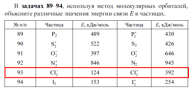 В задачах 89–94, используя метод молекулярных орбиталей, объясните различные значения энергии связи E в частицах..