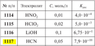 Задачи 1108—1119 (табл. 3.9). Вычислите рН водного раствора электролита. Укажите характер среды. Напишите уравнение диссоциации электролита.