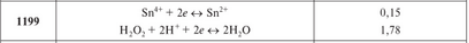 Задачи 1184—1205 (табл. 3.15). По приведенным уравнениям полуреакций и значениям стандартных электронных потенцалов составьте полное ионно-молекулярное уравнение окислительно-восстановительной реакции, самопроизвольно протекающей в редокс-элементе. Рассчитайте ЭДС элемента и стандартную энергию Гиббса реакции ΔrGT0.