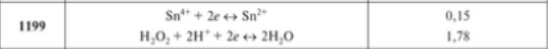 По приведенным уравнениям полуреакций и значениям стандартных электронных потенциалов составьте полное ионно-молекулярное уравнение окислительно-восстановительной реакции, самопроизвольно протекающей в редокс-элементе. Рассчитайте ЭДС элемента и стандартную энергию Гиббса реакции ΔG.