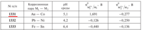 Задача 1331: Определите, какой из контактирующий металлов корродирует по аэрированной водной среде.