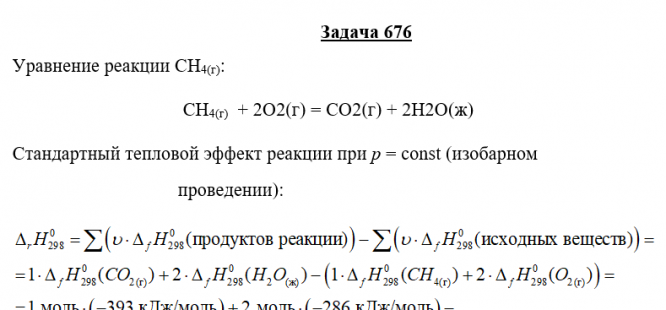 Задача 676 - определите стандартный тепловой эффект реакции: а) при изобарном проведении ΔrH0298 б) при изохорном проведении ΔrU0298. Стандартные значения термодинамических функций приведены в приложении.