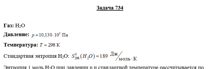 Задача 734 - Определите энтропию 1 моль газа при указанном давлении p и постоянной температуре 298 К. Укажите, увеличивается или уменьшается энтропия вещества при изменении давления от стандартного к заданному. Значения энтропии при стандартных услов
