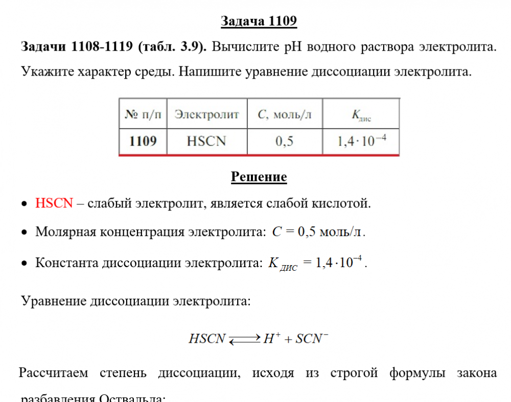 Для студентов по предмету ХимияЗадача 1109 - Вычислите pH водного раствора электролита. Укажите характер среды. Напишите уравнение диссоциации электролита.Задача 1109 - Вычислите pH водного раствора электролита. Укажите характер среды. Напишите уравнение диссоциации электролита.