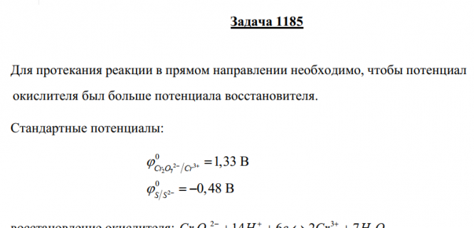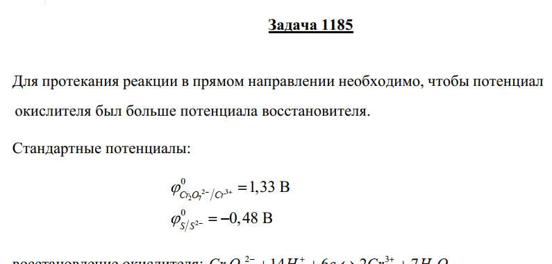 Для студентов по предмету ХимияЗадача 1185 - По приведенным уравнениям полуреакций и значениям стандартных электродных потенциалов составьте полное ионно-молекулярное уравнение окисЗадача 1185 - По приведенным уравнениям полуреакций и значениям стандартных электродных потенциалов составьте полное ионно-молекулярное уравнение окис