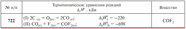 Задача 722: Задача 722 - По заданным термохимическим уравнениям рассчитайте стандартную энтальпию образования указанного вещества.