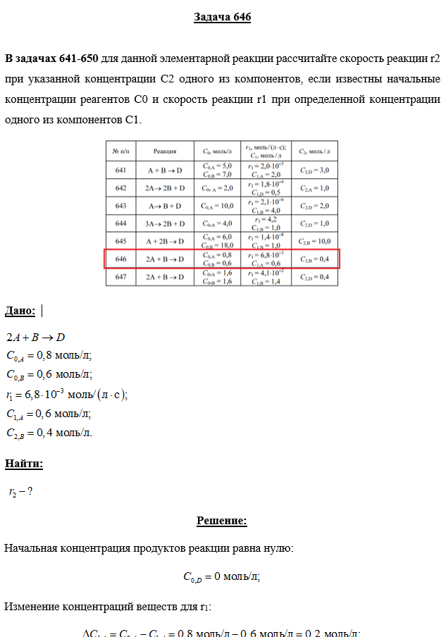 Для студентов по предмету ХимияЗадача 646 - для данной элементарной реакции рассчитайте скорость реакции r2 при указанной концентрации С2 одного из компонентов, если известны начальЗадача 646 - для данной элементарной реакции рассчитайте скорость реакции r2 при указанной концентрации С2 одного из компонентов, если известны началь