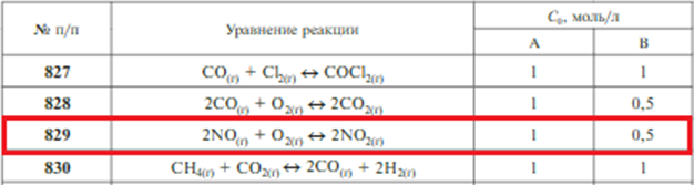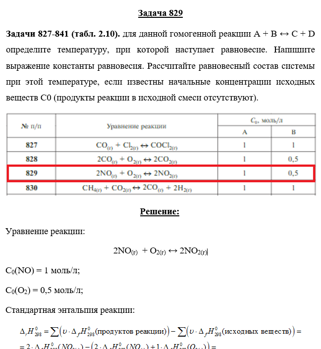 Главная » Учебные материалы » Химия » Решения задач » Несколько классов/семестров » Номер 829 » Для данной гомогенной реакции А + В ↔ С + D определите температуру, при которой наступает равновесие. Напишите выражение константы равновесия. Рассчитайте равновесный состав системы при этой температуре, если известны начальные концентрации исходных