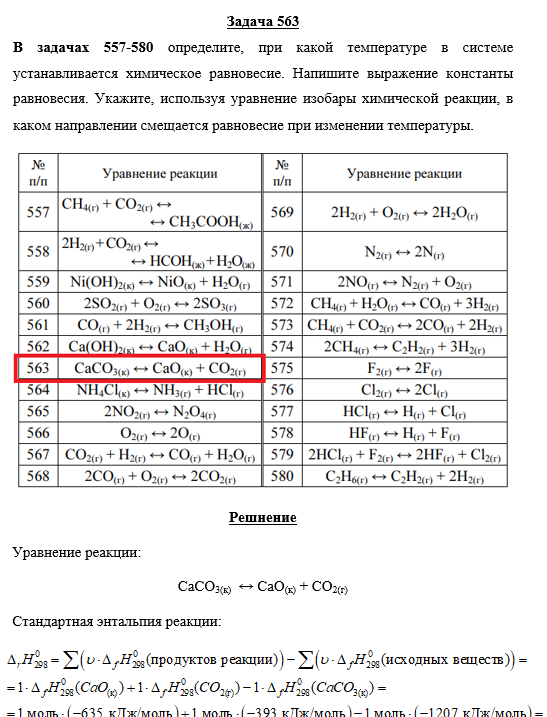 Задача 563 - определите, при какой температуре в системе устанавливается химическое равновесие. Напишите выражение константы равновесия. Укажите, используя уравнение изобары химической реакции, в каком направлении смещается равновесие при изменении т