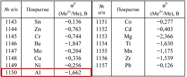 Задача 1150 - определите, к какому типу относится покрытие, нанесенное на сталь (потенциал стали примите равным стандартному потенциалу железа φ0(Fe2+/Fe) = -0,440 В. Напишите уравнения процессов, возникающих в случае разрушения покрытия: а) в морско