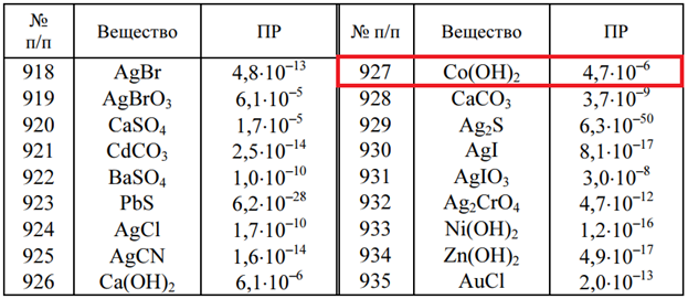 Задача 927 - вычислите растворимость [(моль/л) и (г/л)] вещества при температуре 25 °С и заданном произведении растворимости ПР. Напишите уравнение диссоциации электролита в насыщенном растворе.