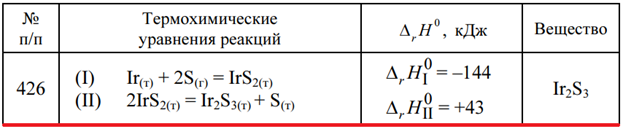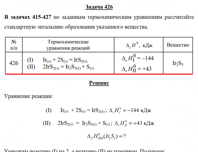 Задача 426: Задача 426 - По заданным термохимическим уравнениям рассчитайте стандартную энтальпию образования указанного вещества.