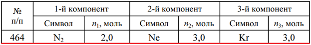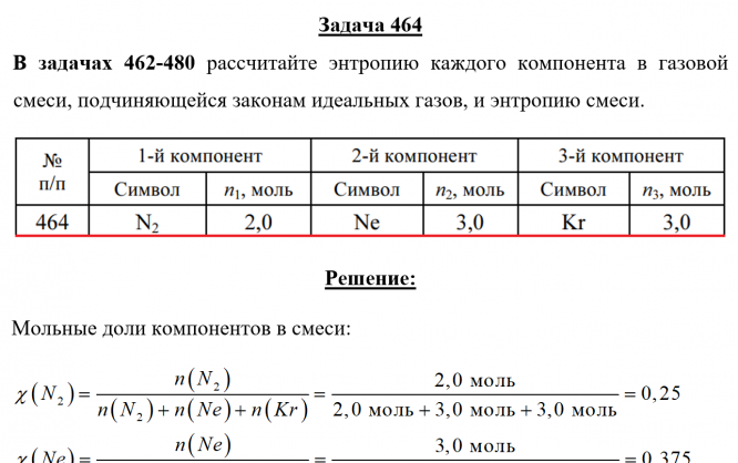 Задача 464 - рассчитайте энтропию каждого компонента в газовой смеси, подчиняющейся законам идеальных газов, и энтропию смеси.