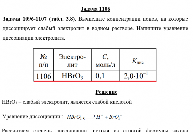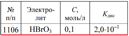 Задача 1106 - Вычислите концентрации ионов, на которые диссоциирует слабый электролит в водном растворе. Напишите уравнение диссоциации электролита.