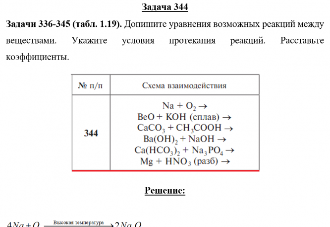 Задачи 336-345 (табл. 1.19). Допишите уравнения возможных реакций между веществами. Укажите условия протекания реакций. Расставьте коэффициенты.